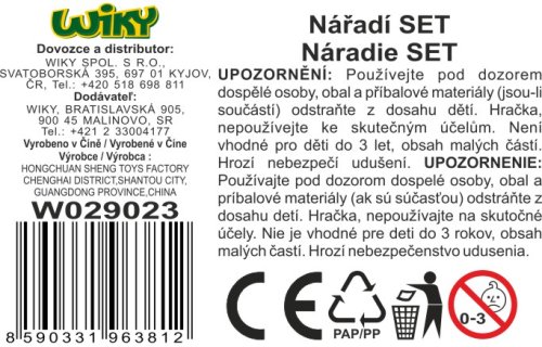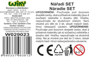 Nářadí sada montovací. Obsah balení - kladívko, nožík, klíč, šroubovák křížový a plochý, šrouby a matice, metr, spojovací materiály.