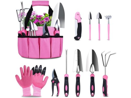 Praktická sada ručního nářadí v růžovém provedení, obsahuje veškeré ruční nářadí, které pro svou práci na zahradě potřebujete. Veškeré ruční nářadí si můžete uložit do příruční brašny, se spoustou kapsiček a přihrádek, abyste měli nářadí při ruce.