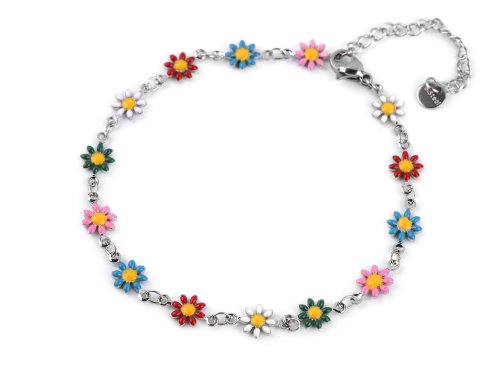 Kotníkový náramek ze smaltovaných přívěsků je vyrobený z kvalitní nerezové oceli. Působí jemně a poutavě, hodí se jako svěží doplněk k běžnému nošení. Zapíná se na karabinku a prodlužovací řetízek.