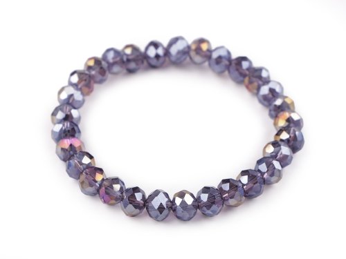 Náramek z broušených skleněných korálků s AB efektem je velice elegantní a efektní. Precizní brus na korálcích způsobuje působivý třpyt a lesk. Díky pružence má náramek univerzální velikost, snadno se natáhne na ruku. Vkusně ozdobí zápěstí na společenských událostech, ale také si ho můžete vzít do práce k halence nebo kostýmku. Zkuste kombinovat více kusů a barev dohromady, výsledek bude efektnější. Černý náramek č. 5 je bez AB úpravy.