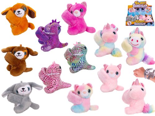 Náramek se zvířátkem 13 cm - mix barev (dino(zel, fial, růž), jednor.(růž., duho. s pusou/bez pusy), pes(hněd, oranž, šedý), koč(duh, sv. růž, tm.růž))