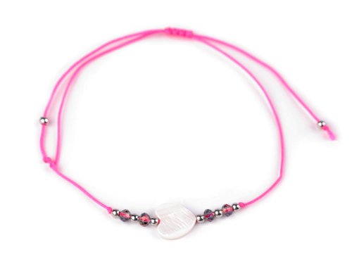 Náramek shamballa perleťové srdce - růžová neon