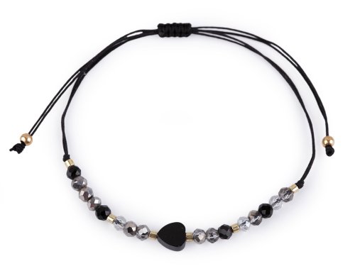 Náramek shamballa srdce a broušené korálky s AB efektem - černá