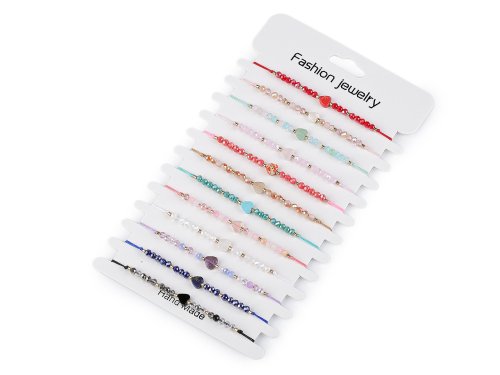 Shamballa náramky se srdíčkem a broušenými korálky s AB efektem jsou úžasným doplňkem letního outfitu. Oslní svým třpytem, hodí se jak k šatům, tak k halenkám, tričkům i plavkám. Jsou ideální pro každodenní nošení, ať už jdete do práce, na schůzku nebo do města. Mohou také sloužit jako dárek pro vaše blízké, jelikož se hodí ke všem příležitostem a stylům. Zapínání mají posuvné, oba konce náramku procházejí středovým uzlem, který umožňuje utažení šňůrek. Náramky mají univerzální velikost. Můžete je nosit samostatně pro decentní vzhled, nebo je kombinovat s dalšími náramky pro výraznější efekt. Náramky v mixu se prodávají jako sada 12 ks na papírové kartě k zavěšení.