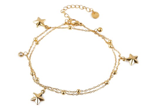 Náramek z nerezové oceli dvojitý, hvězdička - zlatá