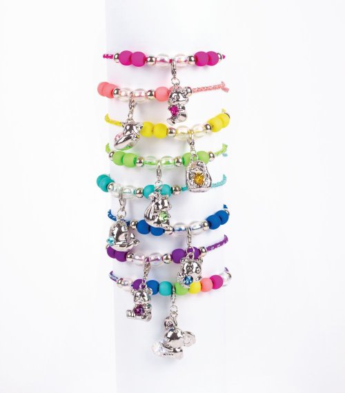 Balení obsahuje 3 náramky s přívěsky a krystalem SWAROVSKI, krabičku ve tvaru srdce, klíček, korálky, barevné šňůry a instrukce Vhodné od 8 let.