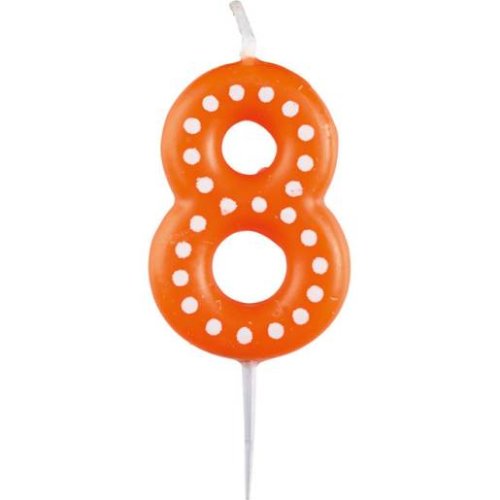Narozeninová svíčka ve tvaru číslice 8 s puntíky. Výška 6,5 cm.