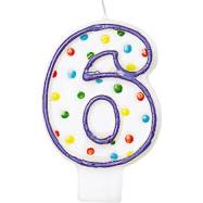 Narozeninová svíčka číslo 6 s tečkami. Výška 7,6 cm.