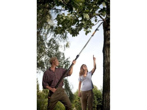 Teleskopická násada je speciálně navržena pro práci ve výškách - až do výšky 6 metrů. Má dvojitý zámek pro bezpečné použití. Násada je velmi lehká, je vyrobena z hliníku. Systém QuikFit umožňuje spojení různého zahradního nářadí s jedinou násadou. Délku lze nastavit v rozmezí 2280 až 4000 mm. Šířka: 90 mm, délka: 2280 mm, hmotnost: 1600 g. Původní Fiskars číslo: 136032. Označení: (L)