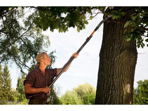 Teleskopická střední násada QuikFit™ s délkou od 140 do 240 cm je snadno ovladatelná a používá se pro méně přístupná místa na zahradě. Její lehká hliníková konstrukce je doplněna západkou, která bezpečně zafixuje nastavenou délku. Má unikátní automatický dvojitý zamykací systém QuikFit™ - držitel ocenění Red Dot Award.