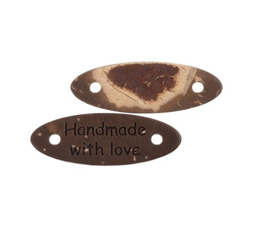 Nášivka "Hand made with love" kokosová 28x10mm - sada 2 ks. - 28x10 mm