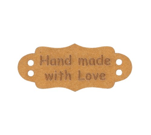 Nášivka "HAND MADE WITH LOVE" papírová - sada 6 ks. - 40x17 mm