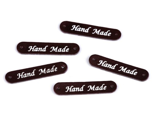 Nášivka / štítek z eko kůže Hand Made 10x48 mm - hnědá tmavá (50 ks)