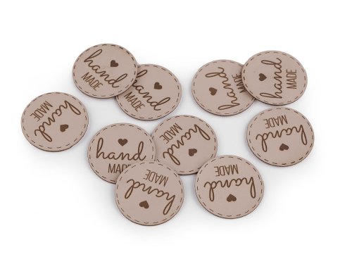 Cedulka z eko kůže je jednostranná. Zdobí ji nápis Hand made. Na dotek je nášivka měkká a poddajná, ale přitom pevná. Je pratelná při teplotě 40 °C. Použití: Cedulky můžete našít nebo nalepit jako štítek na vaše výrobky, například oděvy, tašky, pouzdra nebo dekorace. Skvěle se budou vyjímat na dětském oblečení, na svetrech, čepicích, nákrčnících apod. Své využití určitě najdou i u scrapbookingu, kde s nimi můžete ozdobit alba, přáníčka či zabalit dárky.