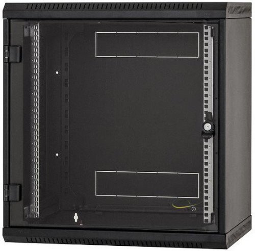 Popis: • 19“ jednodílný nástěnný rozvaděč s krytím IP 30 • Rozvaděč se věší přímo na zeď. • Součástí rozvaděče jsou dvě posuvné vertikální lišty. • Konstrukce rozvaděče: – kompaktní svařovaný rozvaděč – celoskleněné dveře: bezpečnostní tvrzené sklo, tloušťka 5 mm • Rozvaděče jsou určeny k instalaci datových a telekomunikačních zařízení a jejích distribučních systémů. • Rám rozvaděče a všechny oddělitelné části jsou propojeny pomocí zemnících kabelů, které musí být řádně připevněny a zasunuty do konektorů po celou dobu užívání rozvaděče. • Na spodní části rozvaděče je umístěn šroub M8 jako hlavní zemnící bod. • Kabelové vstupy kryté vylamovacími záslepkami jsou umístěny v horní a ve spodní části zadní stěny rozvaděče, další jsou na horní a spodní stěně rozvaděče.