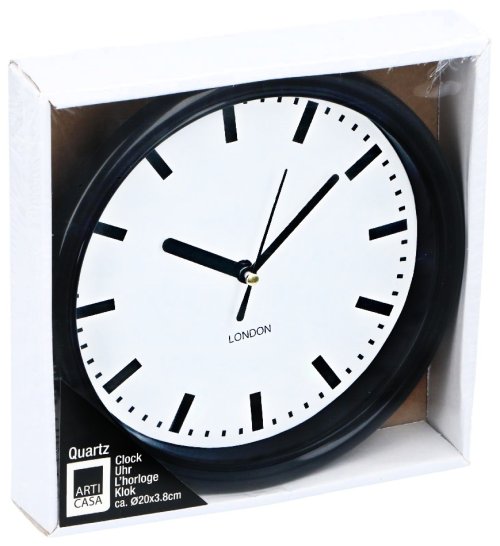 - nástěnné hodiny- průměr 20 cm- výška 3,8 cm- vteřinová ručička- baterie není součástí balení- barva černý rámečekNástěnné hodiny o průměru 20 cm jsou vhodným doplňkem do každého interiéru.