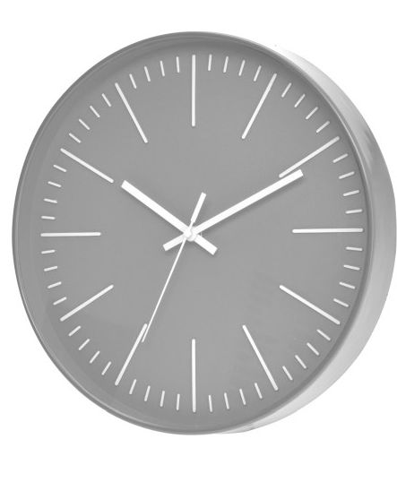 nástěnné hodiny v moderním šedo-bílém designu- šedý ciferník s bílými ručičkami a minutníkem- materiál: plast- napájení 1 x AA baterie (není součástí hodin)- rozměry: 30,5 x 4,3 cm- barva: šedá / bílá