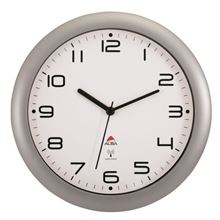 klasické nástěnné hodiny na baterii AA přesné hodiny řízené rádiovým signálem vhodné do prostorných interiérů výrazný a dobře viditelný ciferník kvalitní Quartz mechanismus plastový rám v metalické barvě …