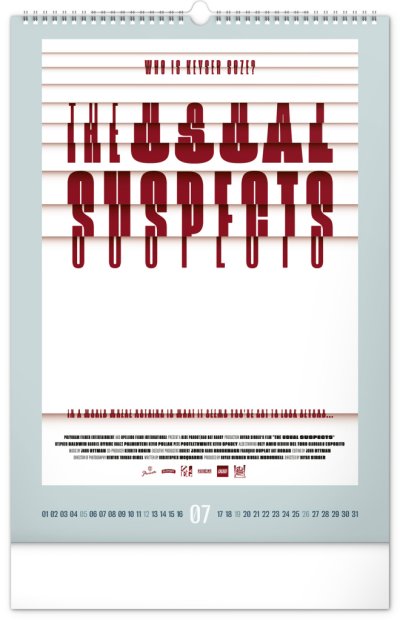 Nástěnný kalendář s alternativními filmovými plakáty od grafického designéra Olega Slepcoffa představuje originální pohled na slavné snímky jako Loupež po italsku, Pianista, Interstellar, Obvyklí podezřelí nebo Můj soused Totoro. Každý měsíc nabízí jedinečné grafické ztvárnění, které osloví milovníky filmu i designu. Kalendář je stylovým doplňkem každého interiéru.