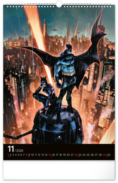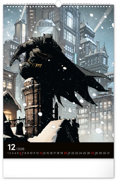 Nástěnný kalendář s obrázky z komiksů Batman potěší každého fanouška Temného rytíře. Nabízí ikonické ilustrace hrdiny z Gothamu na každý měsíc roku. Kalendář je ideální jako dekorace do pokoje nebo kanceláře.