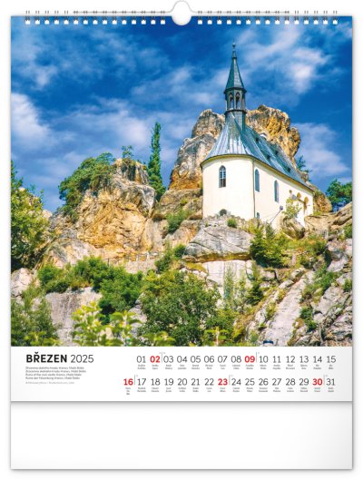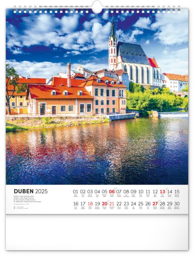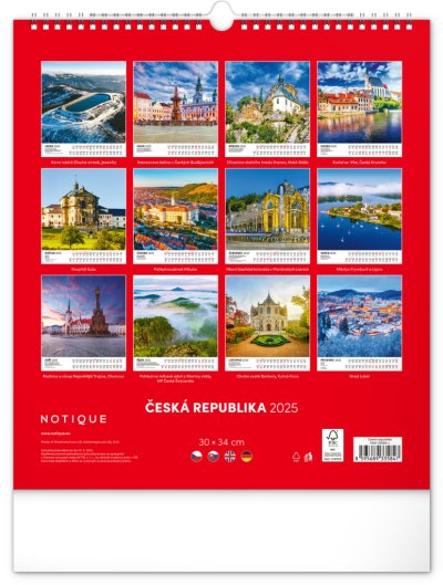 Dvanáct malebných míst České republiky - od Karlových Varů po Znojmo. S českým kalendáriem a v praktickém formátu, který se hodí do každého interiéru.