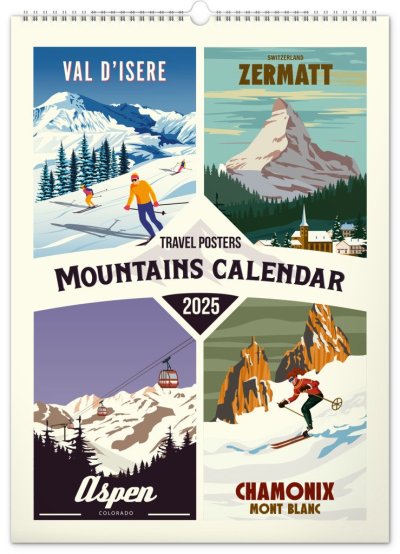 Velkoformátový kalendář s pečlivě vybranými klasickými plakáty horských středisek. Propracované detaily a živé barvy lze obdivovat na velkém formátu kalendáře s vysokou gramáží papíru.