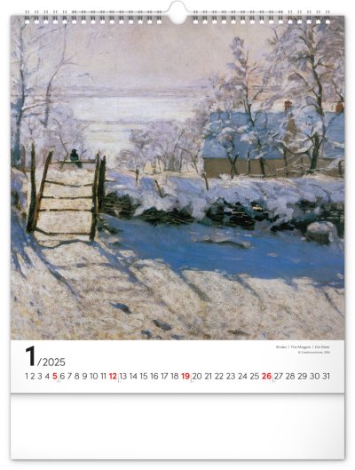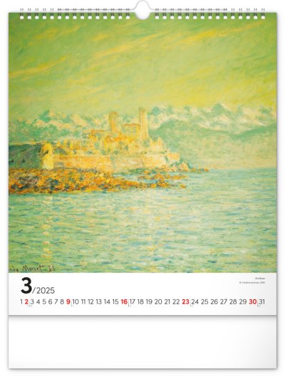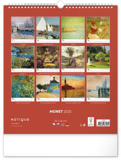 Seznamte se s dílem předního představitele impresionismu Clauda Moneta. Obrazy pestrých krajin a postav ožívají v nástěnném kalendáři s vysokou gramáží papíru.