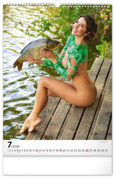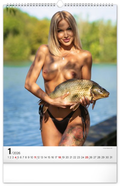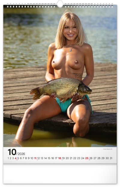 Nečekané spojení trofejních ryb a ženské krásy na stránkách nástěnného kalendáře s univerzálním kalendáriem pro všechny skutečně vášnivé rybáře.