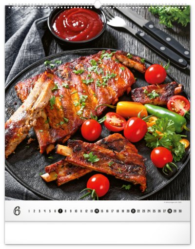 Velkoformátový kalendář z kolekce Platinum Collection obsahuje fotografie luxusních pokrmů, které budete chtít ochutnat. Šťavnaté steaky, křidýlka i stehýnka nebo oku lahodící dezerty oživí interiér v každé kuchyni či jídelně. Kalendář zahrnuje jednoduché kalendárium.