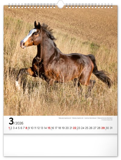 Koně a jejich ušlechtilá krása na originálních snímcích známé německé fotografky Christiane Slawik. Fotografie jsou doplněny univerzálním kalendáriem se zvýrazněnými nedělemi.