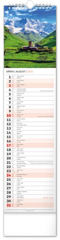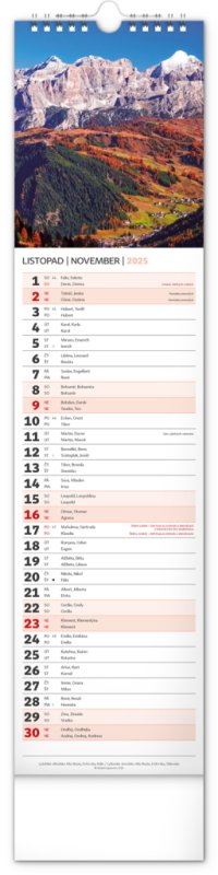 Udělejte si radost pohledem na fotografie malebné krajiny v praktickém úzkém formátu česko-slovenského nástěnného kalendáře.