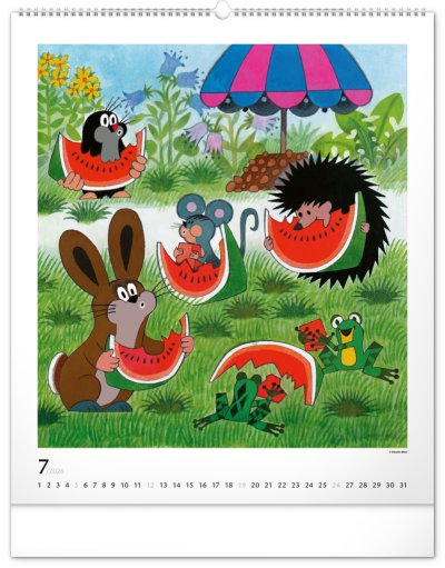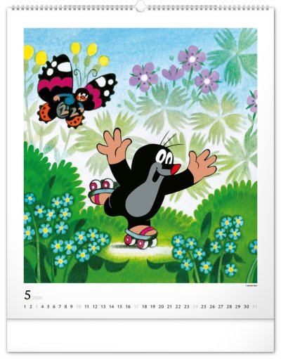 Příběhy o Krtečkovi a jeho dobrodružstvích v ilustracích Zdeňka Milera. Pokud jste také vyrostli na jeho příbězích, budete nadšeni. Velkoformátový kalendář je vytištěn na kvalitním papíru o vysoké gramáži a ilustrace doplňuje univerzální kalendárium se zvýrazněnými nedělemi na bílém pozadí.