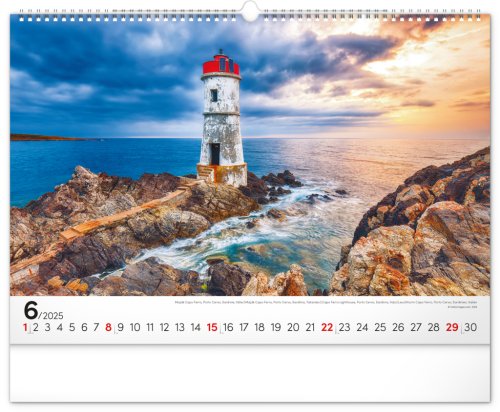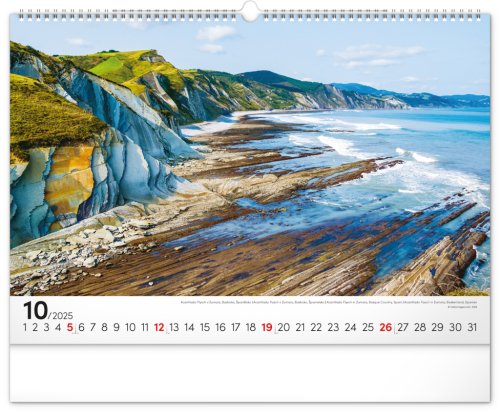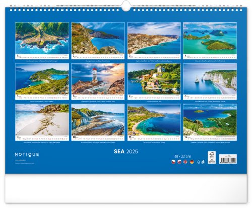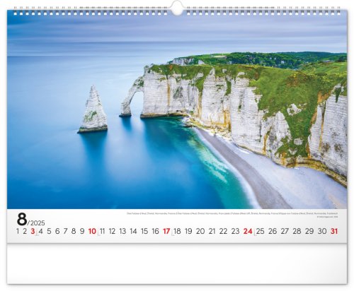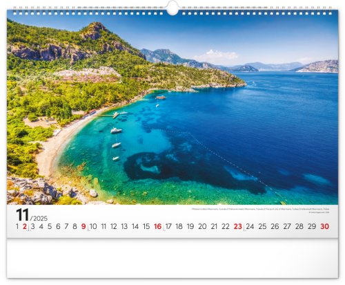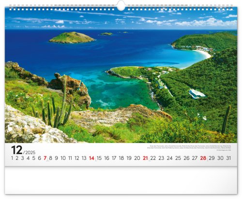 Průzračná tyrkysová hladina, azurové nebe s bílými mráčky, palmy, paprsky slunce, to je skutečný ráj na zemi. Dvanáct plážových momentek z Portugalska, Thajska i jiných světových destinací na efektním bílém pozadí s jednoduchým kalendáriem.
