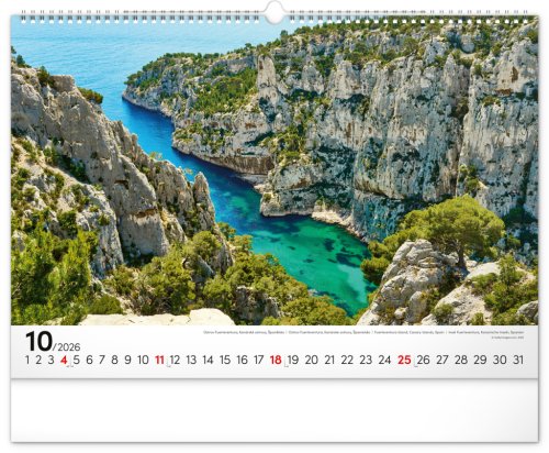 Průzračná tyrkysová hladina, azurové nebe s bílými mráčky, palmy, paprsky slunce, to je skutečný ráj na zemi. Dvanáct plážových momentek z Portugalska, Thajska i jiných světových destinací na efektním bílém pozadí s jednoduchým kalendáriem.