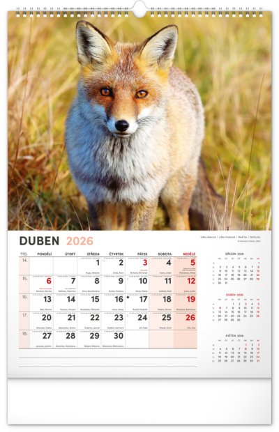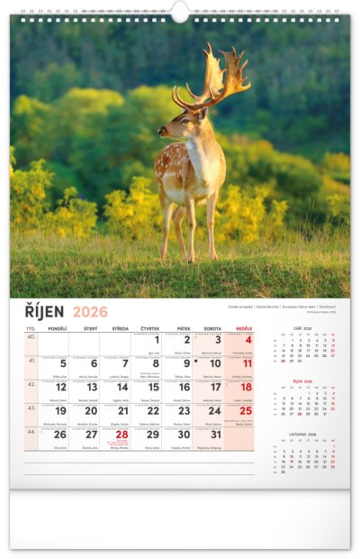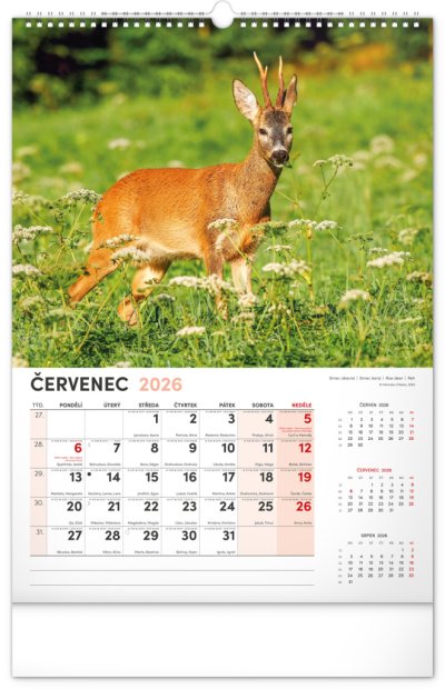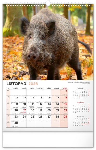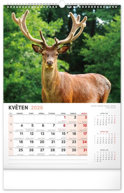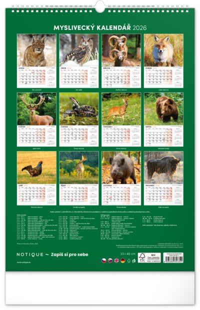 Nástěnný kalendář navržený přímo pro myslivce a pro milovníky myslivosti. Kromě působivých fotografií zvířat žijích v českých lesích se dozvíte dobu lovu a časy východů a západů slunce. Součástí kalendáře je rozšířené kalendárium se svátky a českými jmény.