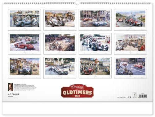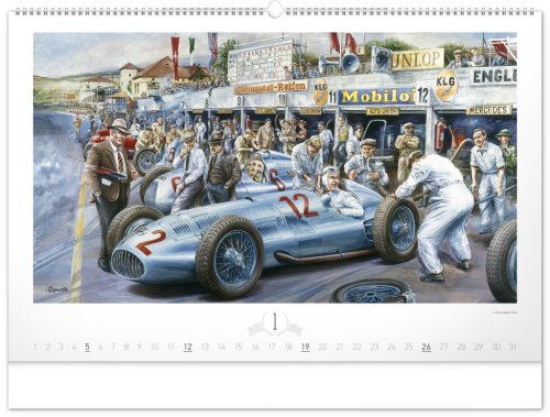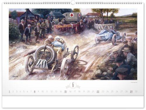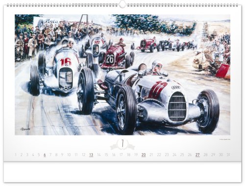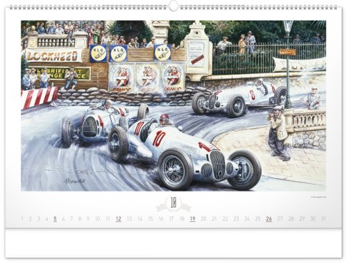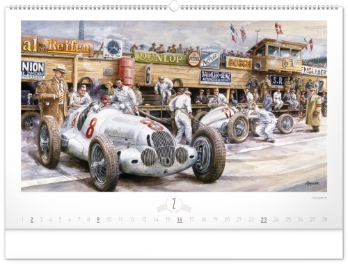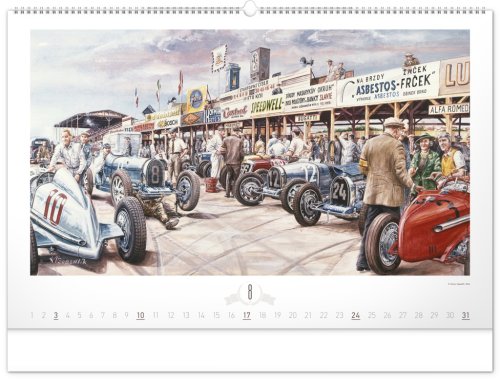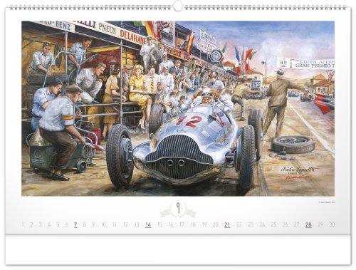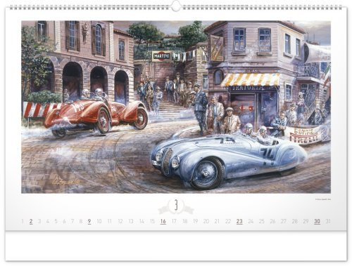 Krása starých sportovních automobilů a neopakovatelné závodní atmosféry od české ilustrátorské legendy Václava Zapadlíka. Nástěnný kalendář v šířkovém formátu je doplněn univerzálním kalendáriem se zvýrazněnými nedělemi.