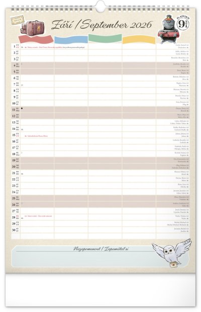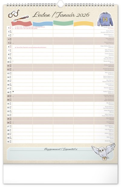 Nástěnný kalendář Rodinný plánovací Harry Potter 2026