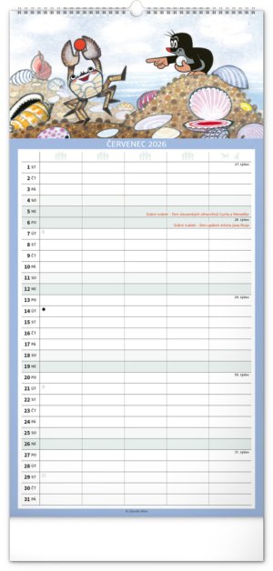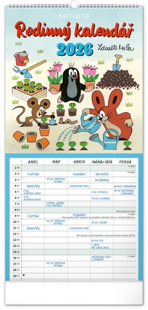 Je pro vás rodina na prvním místě? Zorganizujte všechny rodinné aktivity v praktickém plánovacím kalendáři s klasickými ilustracemi Krtečka od Zdeňka Milera. Kalendář obsahuje české kalendárium a samostatný plánovač aktivit až pro pět členů domácnosti.