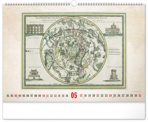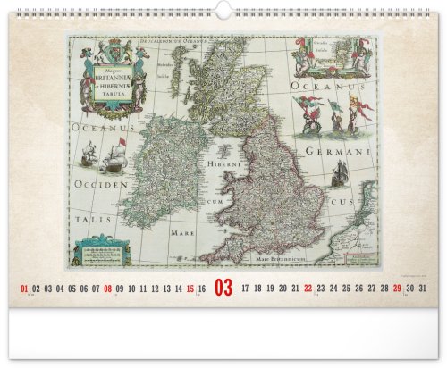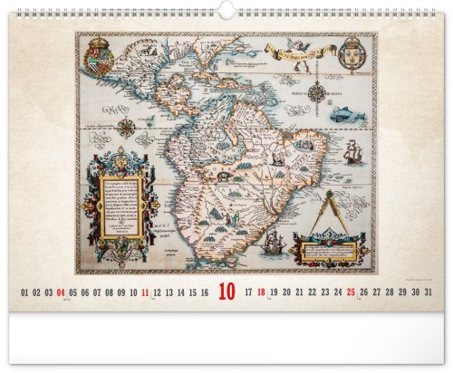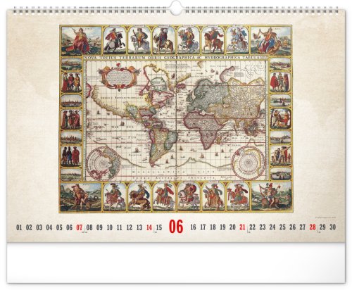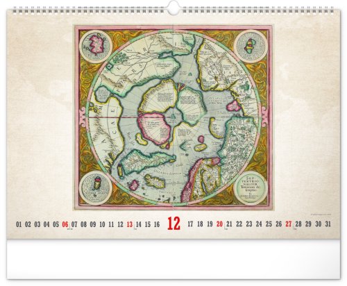 Kalendář pro všechny znalce ručně vytvořených map z dávných dob. Detailní kresby s estetickou hodnotou ale potěší i milovníky užitého umění. Jednoduché kalendárium na bílém pozadí.