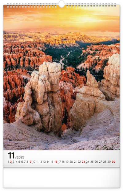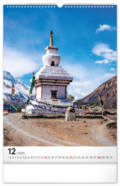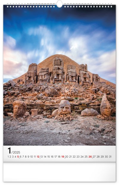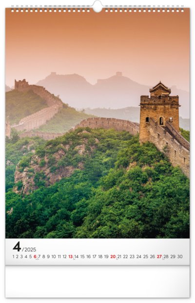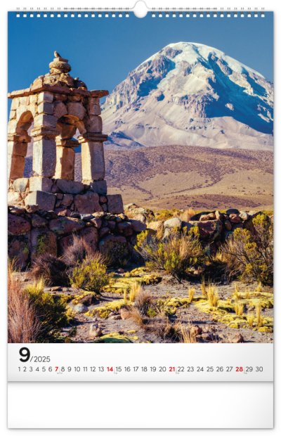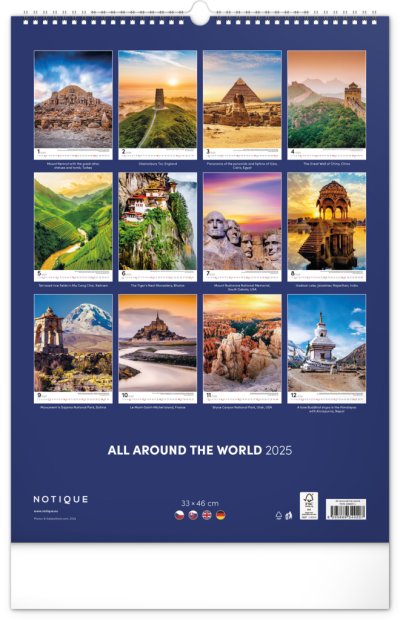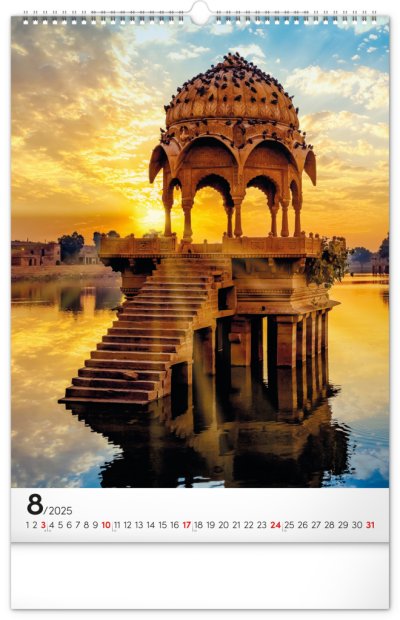 Procestujte prostřednictvím našeho kalendáře rozličné destinace, kde byly vytvořeny dechberoucí stavby. Sytě barevné výjevy hezky vyniknou na bílém pozadí s jednoduchým kalendáriem.