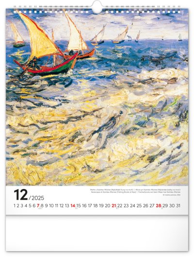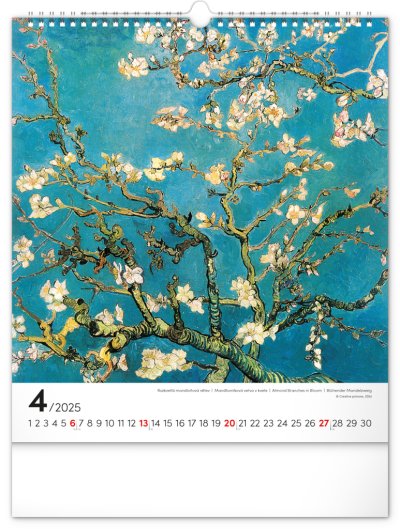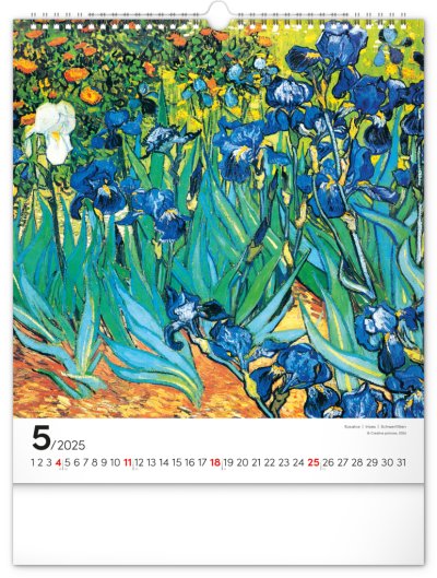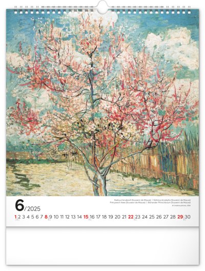 Na stranách kalendáře v obdélníkovém formátu naleznete nejznámější van Goghova díla vytištěná na kvalitním papíře s vysokou gramáží.