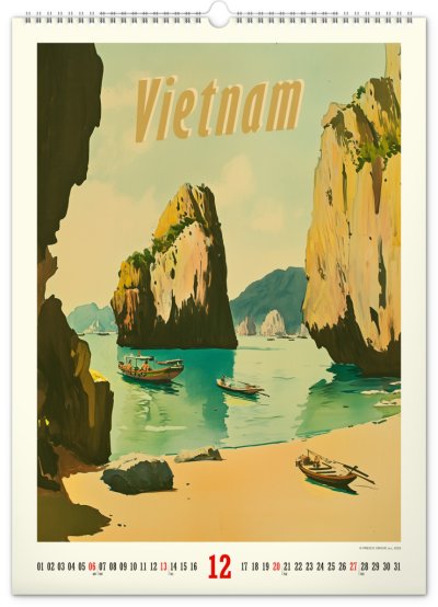 Zasněte se nad krásou tropických rájů s atmosférou starých časů. Nástěnný kalendář doplňuje jednoduché kalendárium na bílém pozadí.