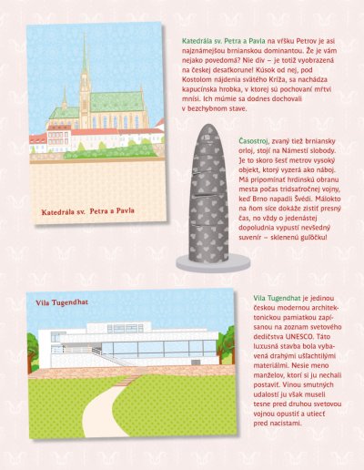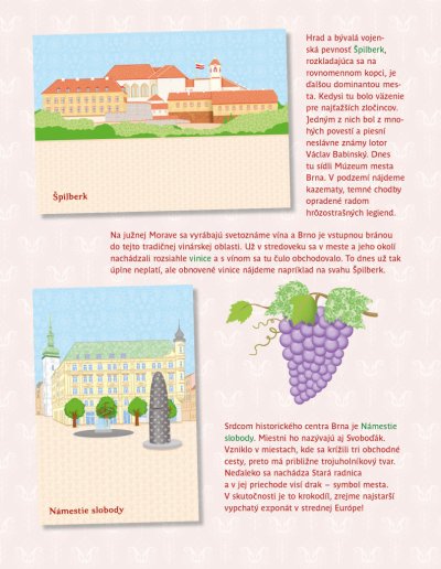 Oblíbená série minimiky přichází s další novinkou v podobě zábavné samolepkové knížky, v níž budou děti společně s panenkou Natálkou a jejími kamarádkami Nelou a Veronikou objevovat nejznámější kouty moravské metropole Brna. Brněnské scenerie mohou doplňovat spoustou krásných, opakovaně použitelných samolepek podle vlastní fantazie a v knížce najdou také mnoho zajímavých informací o zdejších památkách, známých místech, ale také třeba o zvláštnostech moravského regionu.