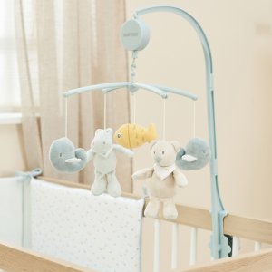 Rozkošný hudební kolotoč s malými plyšáky, kteří se otáčejí a pohybují v rytmu ukolébavky, zajišťuje klidný spánek a sladké sny. Kolotoč lze pohodlně a bezpečně připevnit k postýlce nebo ohrádce. Roztomilé figurky lze snadno vyjmout a vyprat v pračce a nástavec lze snadno otřít.