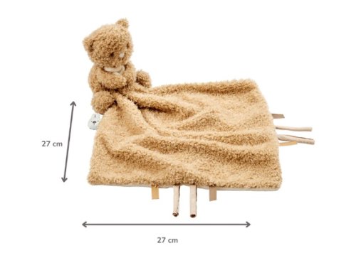 Náš mazlíček je nerozlučný kamarád vašeho miminka už od narození – přináší pocit jistoty, klidu a pohodlí v každé situaci. Je ideální k mazlení v postýlce, uklidnění na cestách či hraní v ohrádce. Měkoučká dečka s milým motivem nabízí řadu úchopových možností, které podporují rozvoj smyslů a jemné motoriky. Děťátko může pohodlně chytat hlavičku zvířátka nebo zajímavé visačky po stranách. Praktické poutko umožňuje připevnit dudlík, aby byl vždy po ruce.