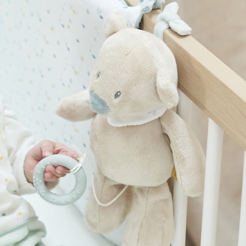Tento hudební plyšák si podmaní srdce vašeho děťátka. S láskou navržený hudební plyšák nabízí řadu možností uchopení včetně oušek, ocasu a silikonového kroužku, čímž podporuje rozvoj hmatových a motorických schopností. Extra měkký materiál poskytuje pocit bezpečí a jistoty v prvních týdnech a měsících. S jemnou ukolébavkou „La-Le-Lu“ je hudební hračka dokonalým společníkem pro sladké sny.