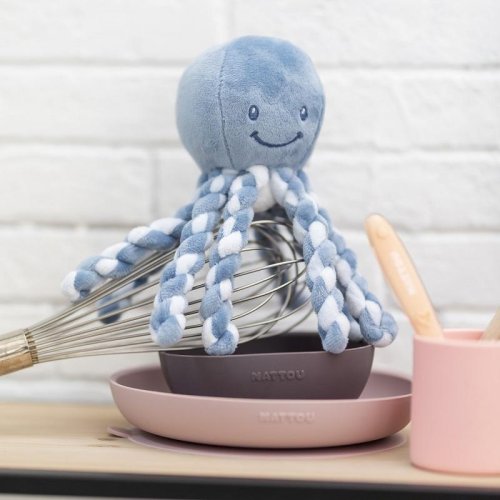 Čtyřdílný jídelní set od Nattou z měkkého silikonu je velmi praktický, snadno uchopitelný a protiskluzový.