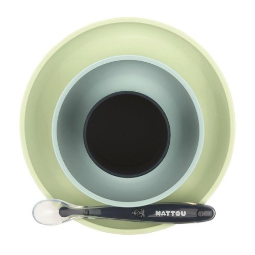 Čtyřdílný jídelní set od Nattou z měkkého silikonu je velmi praktický, snadno uchopitelný a protiskluzový. Set obsahuje talířek a misku s přísavkou, hrnek a lžičku. Zaoblené vnitřní hrany misky a talířku usnadňují nabírání potravin dětičkám a jejich rodičům.