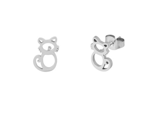 Náušnice z nerezové oceli kočka - stříbrná