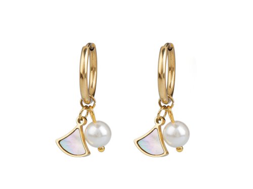 Náušnice kroužky jsou vyrobené z kvalitní nerezové oceli. Dole jsou ozdobené přívěskem perly a lístečku s vsazenou imitací perleti. Jsou velice elegantní, oceníte je ke každodennímu nošení, ale i ke slavnostním příležitostem. Skvěle doplní byznys styl oblékání, ležérní outfity i společenské šaty. Dají se rozevřít, zapínají se zacvaknutím. Přívěsky lze z kroužku sundat a nosit ho jen samotný, neozdobený.